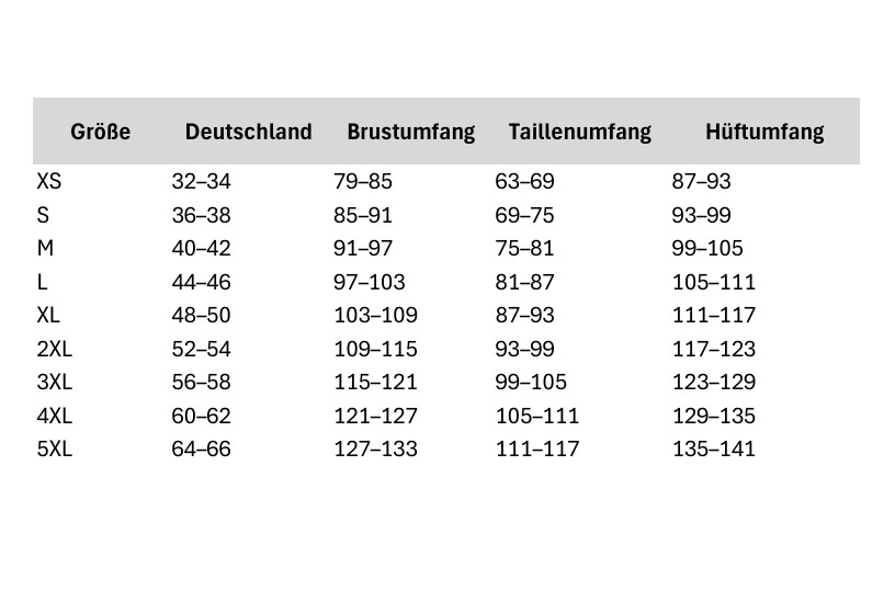 Groessentabelle Captainworkwear 390